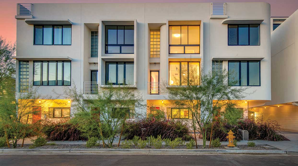 Glinting in the bright sun, a prism of oxidized copper and glass juts out of the desert sand like an unearthed relic from another time. In actuality, the geometric monolith is the angular roof of the “House of the Future,” the first-ever computerized home, built in 1980 as a publicity attraction for the newly conceived village of Ahwatukee Foothills.